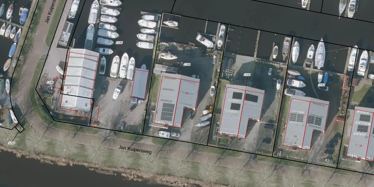 Jan Kuipersweg 11 is gelegen op kadastraal perceel SNE00F1194. Deze kadastrale aanduiding is uniek en wordt gebruikt door het Kadaster om eigendomsrechten en andere zakelijke rechten vast te leggen. Het perceel maakt onderdeel uit van de kadastrale gemeente Sneek.