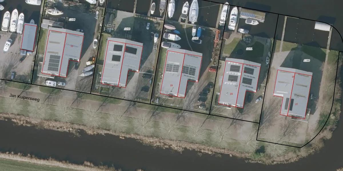 Jan Kuipersweg 19 is gelegen op kadastraal perceel SNE00F1192. Deze kadastrale aanduiding is uniek en wordt gebruikt door het Kadaster om eigendomsrechten en andere zakelijke rechten vast te leggen. Het perceel maakt onderdeel uit van de kadastrale gemeente Sneek.