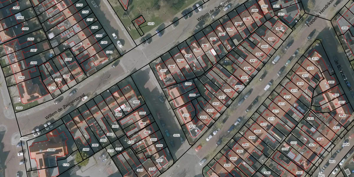 Gebruik de zoekbalk of klik op een perceel voor informatie over de adressen binnen dit perceel.