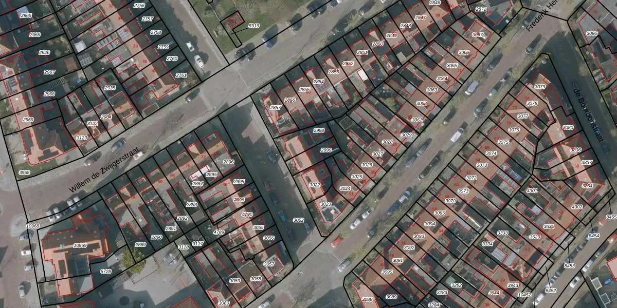 Gebruik de zoekbalk of klik op een perceel voor informatie over de adressen binnen dit perceel.