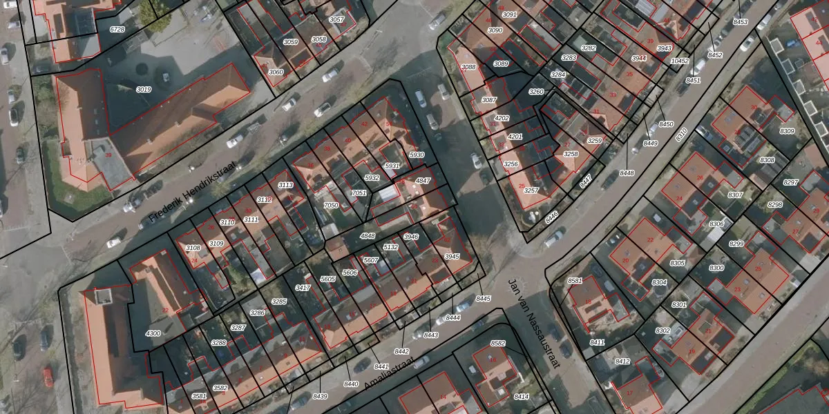 Gebruik de zoekbalk of klik op een perceel voor informatie over de adressen binnen dit perceel.