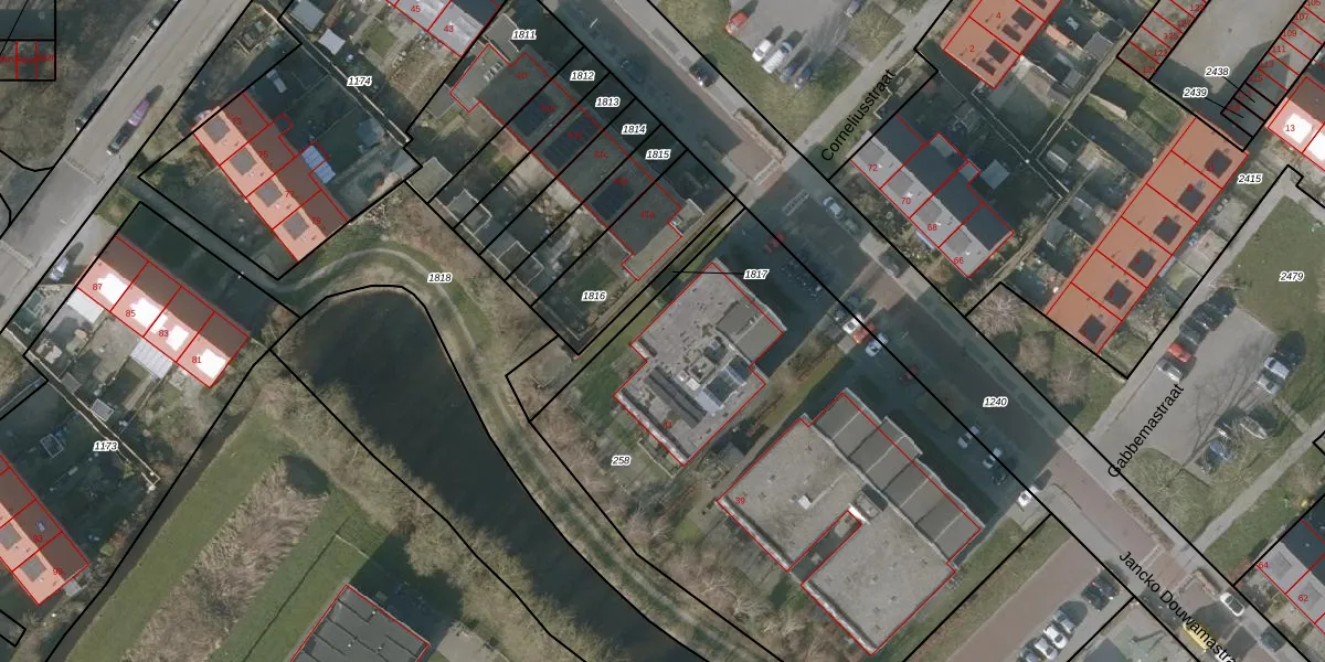 Jancko Douwamastraat 41-103 is gelegen op kadastraal perceel SNE00E258. Deze kadastrale aanduiding is uniek en wordt gebruikt door het Kadaster om eigendomsrechten en andere zakelijke rechten vast te leggen. Het perceel maakt onderdeel uit van de kadastrale gemeente Sneek.