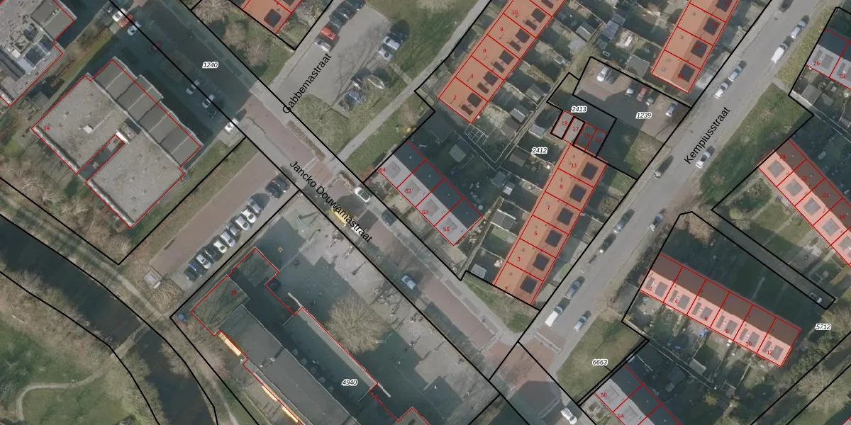 Jancko Douwamastraat 60 is gelegen op kadastraal perceel SNE00E2412. Deze kadastrale aanduiding is uniek en wordt gebruikt door het Kadaster om eigendomsrechten en andere zakelijke rechten vast te leggen. Het perceel maakt onderdeel uit van de kadastrale gemeente Sneek.