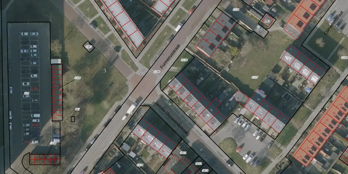 Jancko Douwamastraat 84 is gelegen op kadastraal perceel SNE00E1177. Deze kadastrale aanduiding is uniek en wordt gebruikt door het Kadaster om eigendomsrechten en andere zakelijke rechten vast te leggen. Het perceel maakt onderdeel uit van de kadastrale gemeente Sneek.