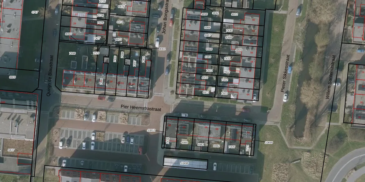 Gebruik de zoekbalk of klik op een perceel voor informatie over de adressen binnen dit perceel.