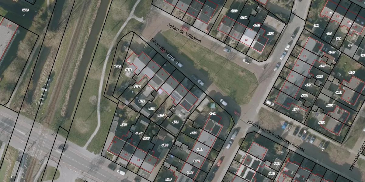 Johan de Wittplein 2 is gelegen op kadastraal perceel SNE00A4710. Deze kadastrale aanduiding is uniek en wordt gebruikt door het Kadaster om eigendomsrechten en andere zakelijke rechten vast te leggen. Het perceel maakt onderdeel uit van de kadastrale gemeente Sneek.