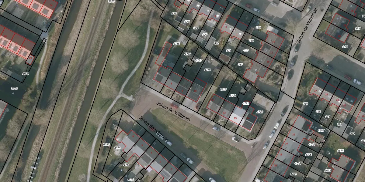 Johan de Wittplein 9 is gelegen op kadastraal perceel SNE00A4717. Deze kadastrale aanduiding is uniek en wordt gebruikt door het Kadaster om eigendomsrechten en andere zakelijke rechten vast te leggen. Het perceel maakt onderdeel uit van de kadastrale gemeente Sneek.