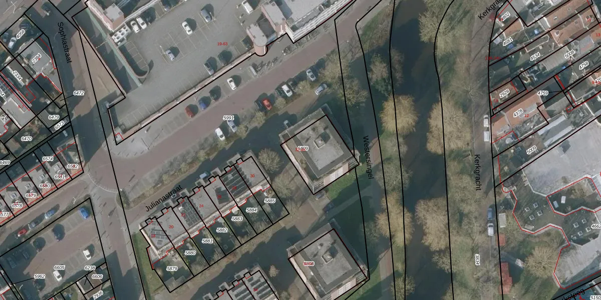 Julianastraat 32 is gelegen op kadastraal perceel SNE00A5809. Deze kadastrale aanduiding is uniek en wordt gebruikt door het Kadaster om eigendomsrechten en andere zakelijke rechten vast te leggen. Het perceel maakt onderdeel uit van de kadastrale gemeente Sneek.