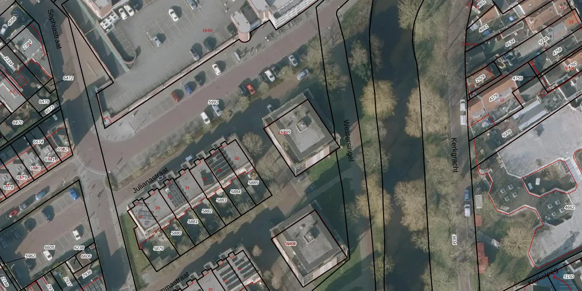 Julianastraat 34 is gelegen op kadastraal perceel SNE00A5809. Deze kadastrale aanduiding is uniek en wordt gebruikt door het Kadaster om eigendomsrechten en andere zakelijke rechten vast te leggen. Het perceel maakt onderdeel uit van de kadastrale gemeente Sneek.