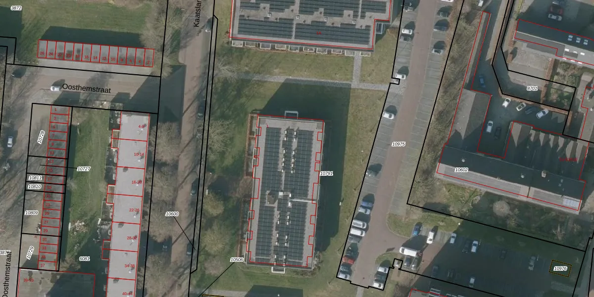 Kaatsland 1-105 is gelegen op kadastraal perceel SNE00C10791. Deze kadastrale aanduiding is uniek en wordt gebruikt door het Kadaster om eigendomsrechten en andere zakelijke rechten vast te leggen. Het perceel maakt onderdeel uit van de kadastrale gemeente Sneek.