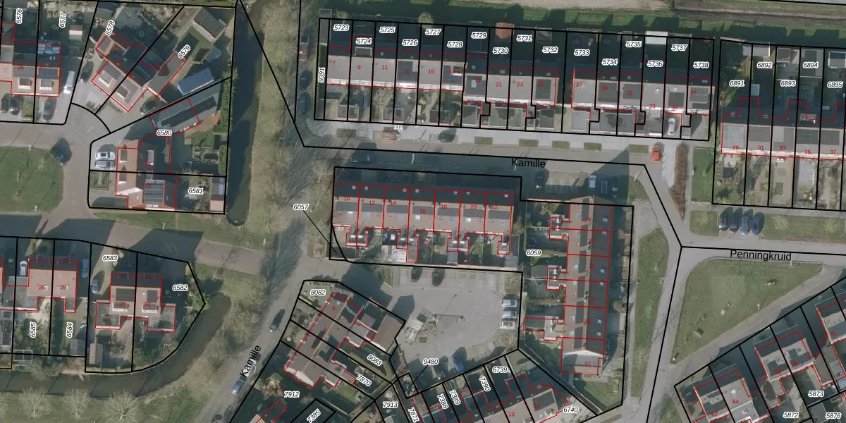 Kamille 16 is gelegen op kadastraal perceel SNE00C6059. Deze kadastrale aanduiding is uniek en wordt gebruikt door het Kadaster om eigendomsrechten en andere zakelijke rechten vast te leggen. Het perceel maakt onderdeel uit van de kadastrale gemeente Sneek.