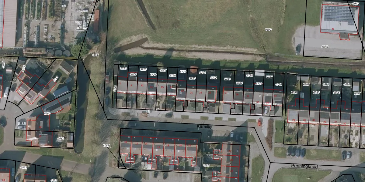 Het perceel waarop Kamille 19 staat heeft een oppervlakte van 130 m². Dit is een middelgroot perceel. De perceeloppervlakte wordt geregistreerd door het Kadaster. Gedetailleerde informatie over de maten van dit perceel kunt u vinden in het rapport Kadastrale kaart met maatvoering van Kamille 19.