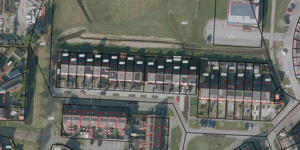 Het perceel waarop Kamille 27 staat heeft een oppervlakte van 182 m². Dit is een middelgroot perceel. De perceeloppervlakte wordt geregistreerd door het Kadaster. Gedetailleerde informatie over de maten van dit perceel kunt u vinden in het rapport Kadastrale kaart met maatvoering van Kamille 27.