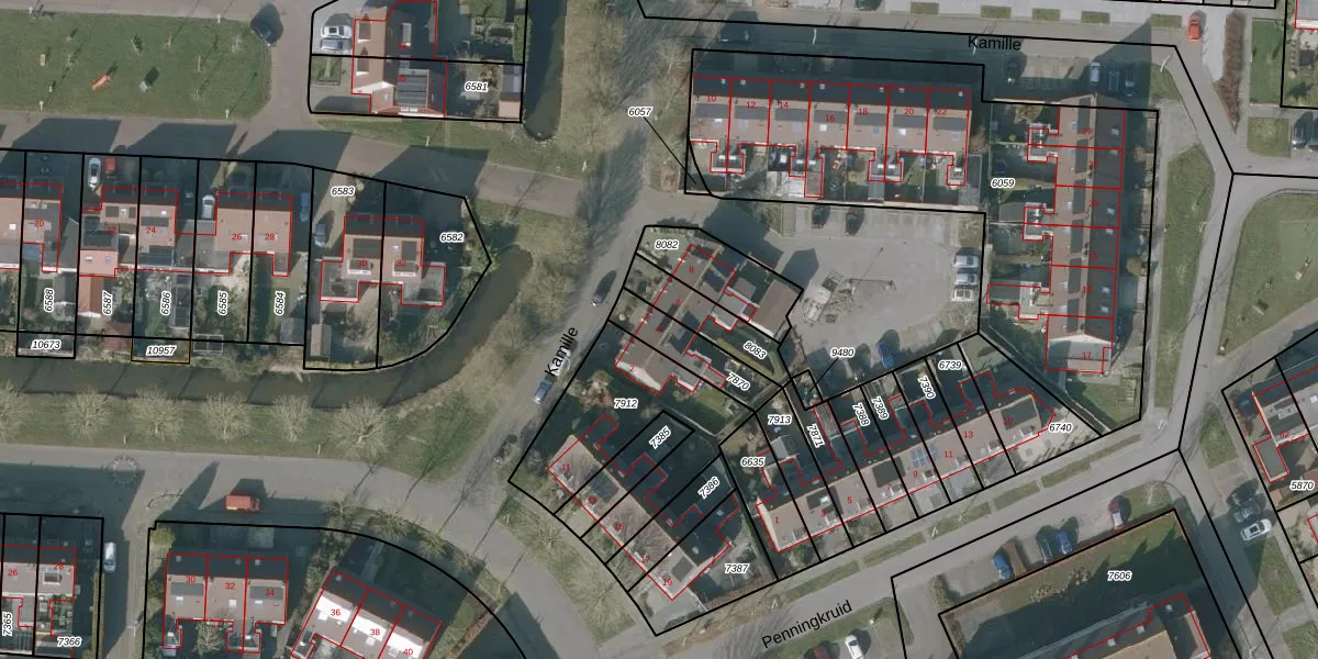 Het perceel waarop Kamille 4 staat heeft een oppervlakte van 148 m². Dit is een middelgroot perceel. De perceeloppervlakte wordt geregistreerd door het Kadaster. Gedetailleerde informatie over de maten van dit perceel kunt u vinden in het rapport Kadastrale kaart met maatvoering van Kamille 4.