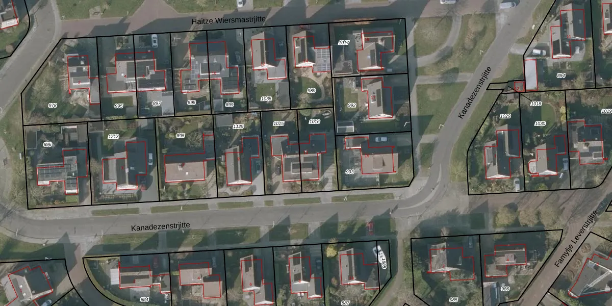 Kanadezenstrjitte 13 is gelegen op kadastraal perceel SNE00E1016. Deze kadastrale aanduiding is uniek en wordt gebruikt door het Kadaster om eigendomsrechten en andere zakelijke rechten vast te leggen. Het perceel maakt onderdeel uit van de kadastrale gemeente Sneek.