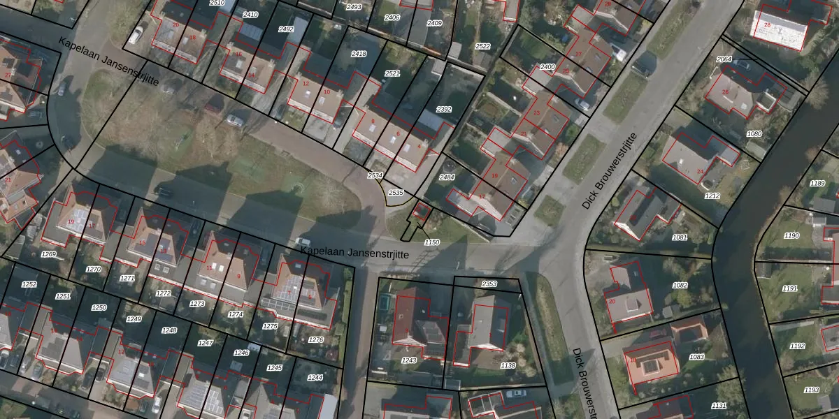 Gebruik de zoekbalk of klik op een perceel voor informatie over de adressen binnen dit perceel.