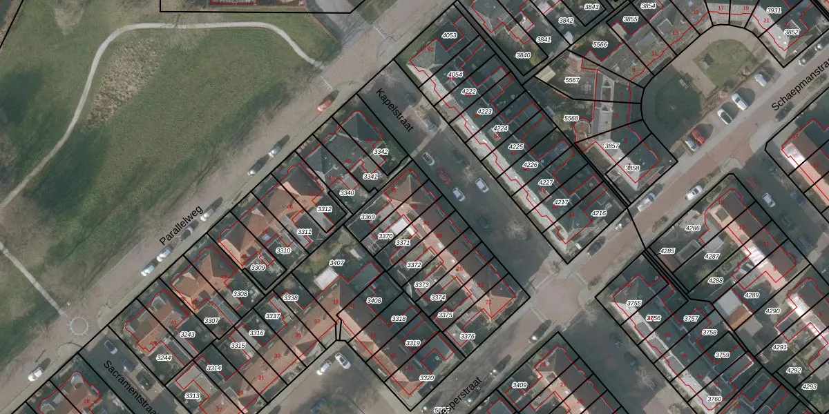Kapelstraat 43 is gelegen op kadastraal perceel SNE00A3370. Deze kadastrale aanduiding is uniek en wordt gebruikt door het Kadaster om eigendomsrechten en andere zakelijke rechten vast te leggen. Het perceel maakt onderdeel uit van de kadastrale gemeente Sneek.