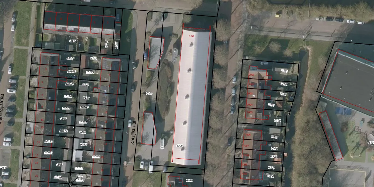 Het perceel waarop Katzijlstraat 15 staat heeft een oppervlakte van 2352 m². Dit is een zeer groot perceel. De perceeloppervlakte wordt geregistreerd door het Kadaster. Gedetailleerde informatie over de maten van dit perceel kunt u vinden in het rapport Kadastrale kaart met maatvoering van Katzijlstraat 15.