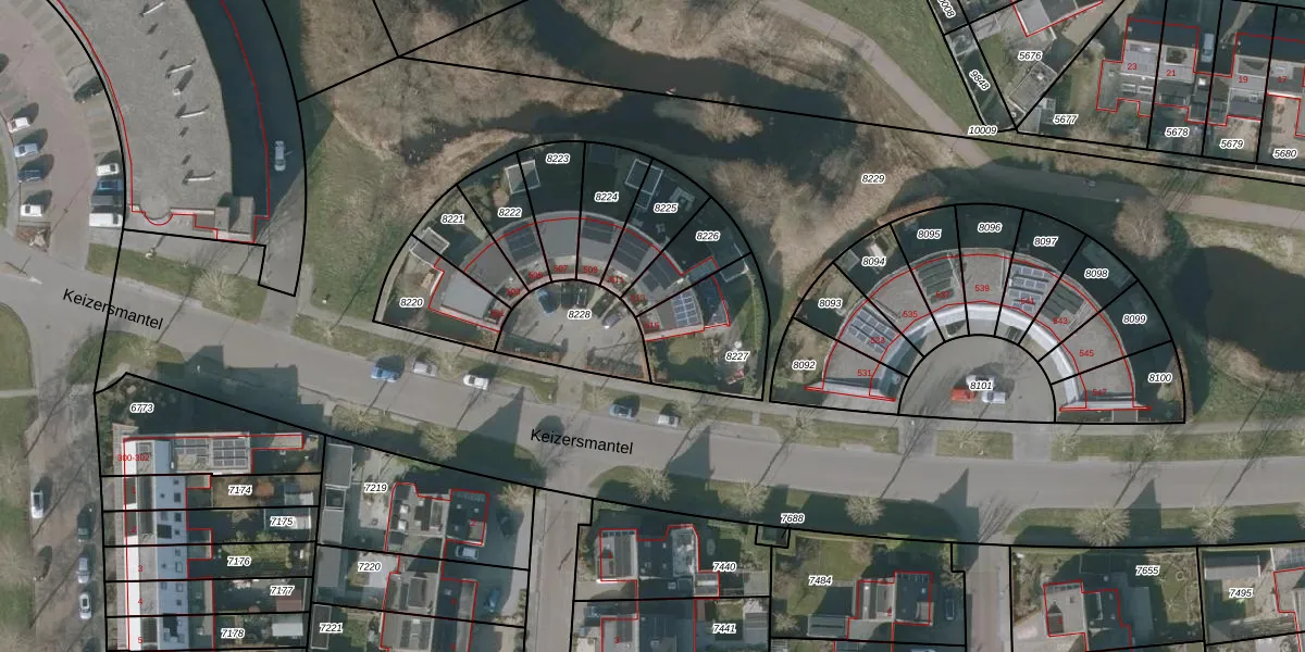 Keizersmantel 515 is gelegen op kadastraal perceel SNE00C8227. Deze kadastrale aanduiding is uniek en wordt gebruikt door het Kadaster om eigendomsrechten en andere zakelijke rechten vast te leggen. Het perceel maakt onderdeel uit van de kadastrale gemeente Sneek.