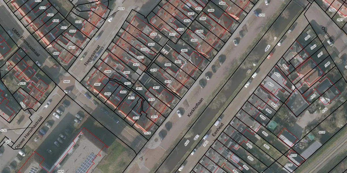 Kerkhoflaan 5 is gelegen op kadastraal perceel SNE00A3479. Deze kadastrale aanduiding is uniek en wordt gebruikt door het Kadaster om eigendomsrechten en andere zakelijke rechten vast te leggen. Het perceel maakt onderdeel uit van de kadastrale gemeente Sneek.