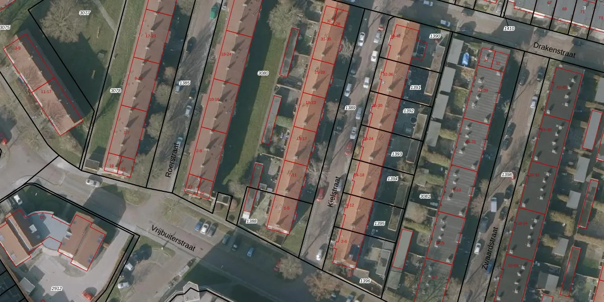 Kielstraat 17 is gelegen op kadastraal perceel SNE00D3080. Deze kadastrale aanduiding is uniek en wordt gebruikt door het Kadaster om eigendomsrechten en andere zakelijke rechten vast te leggen. Het perceel maakt onderdeel uit van de kadastrale gemeente Sneek.