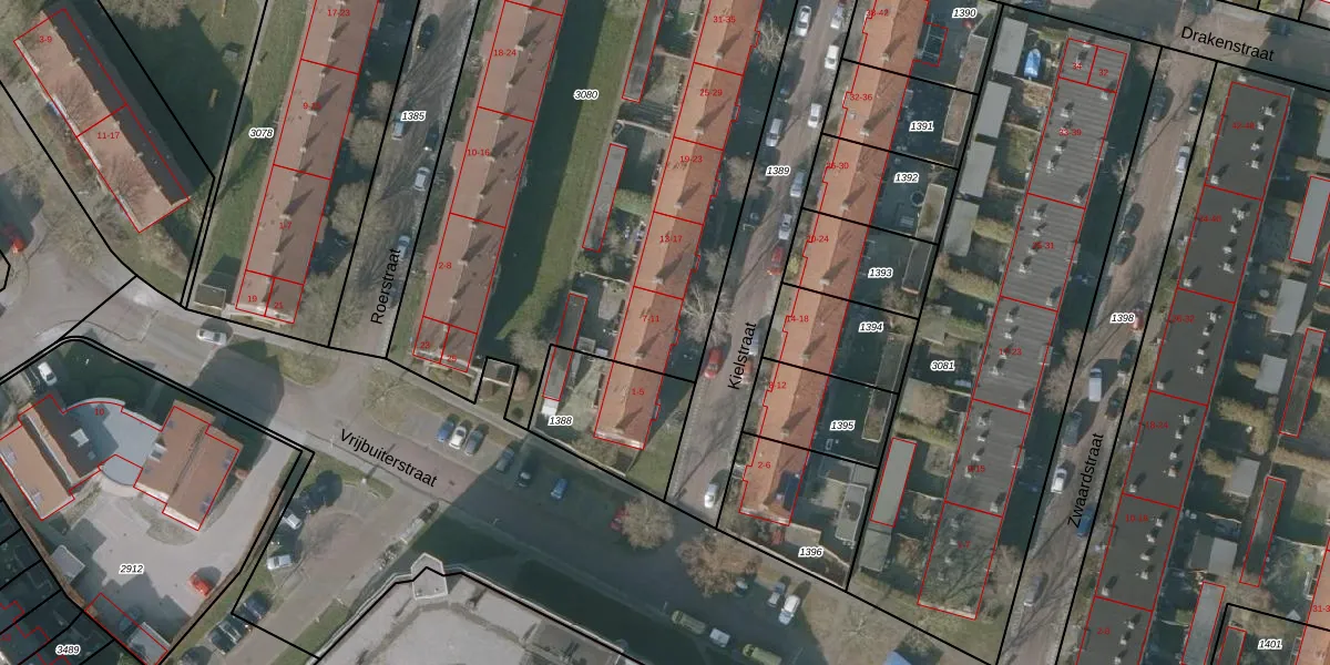 Kielstraat 9 is gelegen op kadastraal perceel SNE00D3080. Deze kadastrale aanduiding is uniek en wordt gebruikt door het Kadaster om eigendomsrechten en andere zakelijke rechten vast te leggen. Het perceel maakt onderdeel uit van de kadastrale gemeente Sneek.