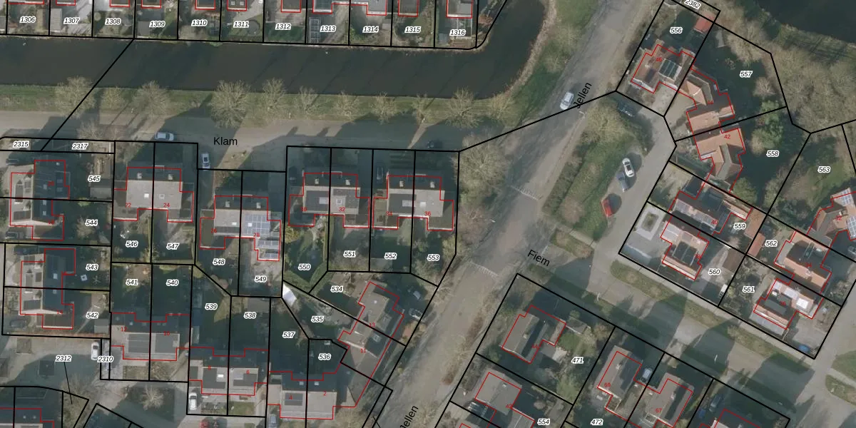 Klam 36 is gelegen op kadastraal perceel SNE00E553. Deze kadastrale aanduiding is uniek en wordt gebruikt door het Kadaster om eigendomsrechten en andere zakelijke rechten vast te leggen. Het perceel maakt onderdeel uit van de kadastrale gemeente Sneek.