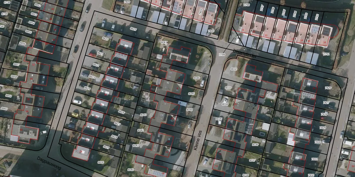 Het perceel waarop Kleine vos 6 staat heeft een oppervlakte van 313 m². Dit is een groot perceel. De perceeloppervlakte wordt geregistreerd door het Kadaster. Gedetailleerde informatie over de maten van dit perceel kunt u vinden in het rapport Kadastrale kaart met maatvoering van Kleine vos 6.