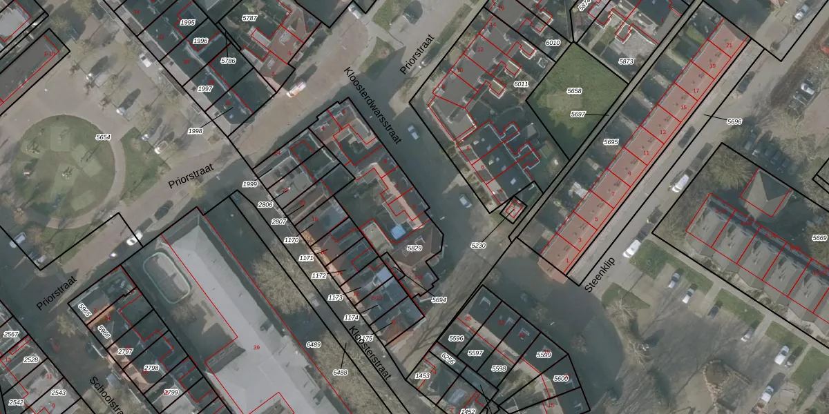 Kloosterdwarsstraat 5 is gelegen op kadastraal perceel SNE00A5829. Deze kadastrale aanduiding is uniek en wordt gebruikt door het Kadaster om eigendomsrechten en andere zakelijke rechten vast te leggen. Het perceel maakt onderdeel uit van de kadastrale gemeente Sneek.