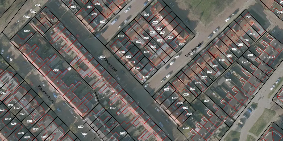 Gebruik de zoekbalk of klik op een perceel voor informatie over de adressen binnen dit perceel.