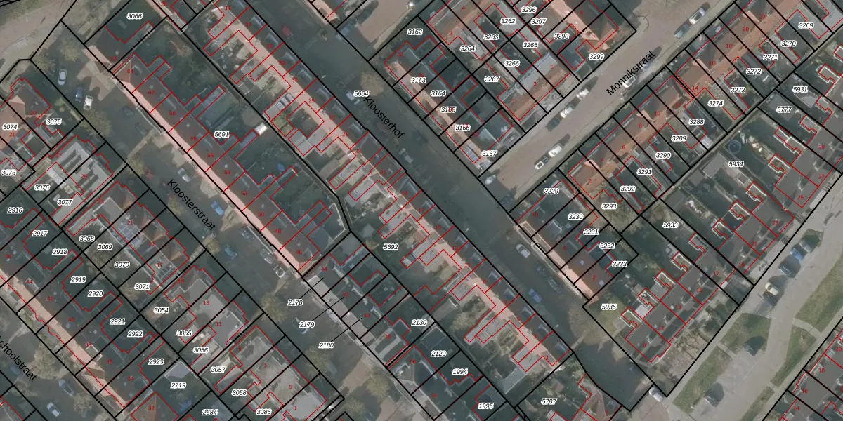 Het perceel waarop Kloosterhof 17 staat heeft een oppervlakte van 2107 m². Dit is een zeer groot perceel. De perceeloppervlakte wordt geregistreerd door het Kadaster. Gedetailleerde informatie over de maten van dit perceel kunt u vinden in het rapport Kadastrale kaart met maatvoering van Kloosterhof 17.