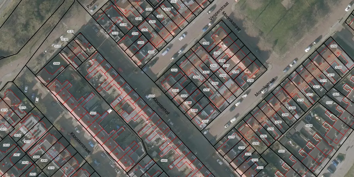 Het perceel waarop Kloosterhof 20 staat heeft een oppervlakte van 85 m². Dit is een klein perceel. De perceeloppervlakte wordt geregistreerd door het Kadaster. Gedetailleerde informatie over de maten van dit perceel kunt u vinden in het rapport Kadastrale kaart met maatvoering van Kloosterhof 20.