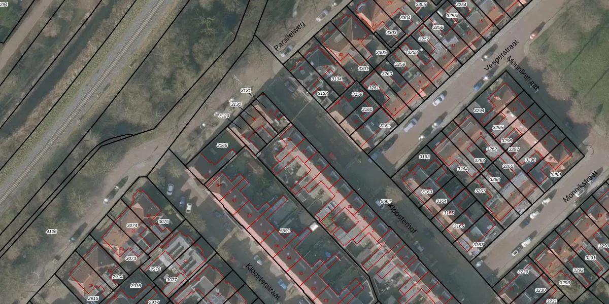 Het perceel waarop Kloosterhof 37 staat heeft een oppervlakte van 2107 m². Dit is een zeer groot perceel. De perceeloppervlakte wordt geregistreerd door het Kadaster. Gedetailleerde informatie over de maten van dit perceel kunt u vinden in het rapport Kadastrale kaart met maatvoering van Kloosterhof 37.