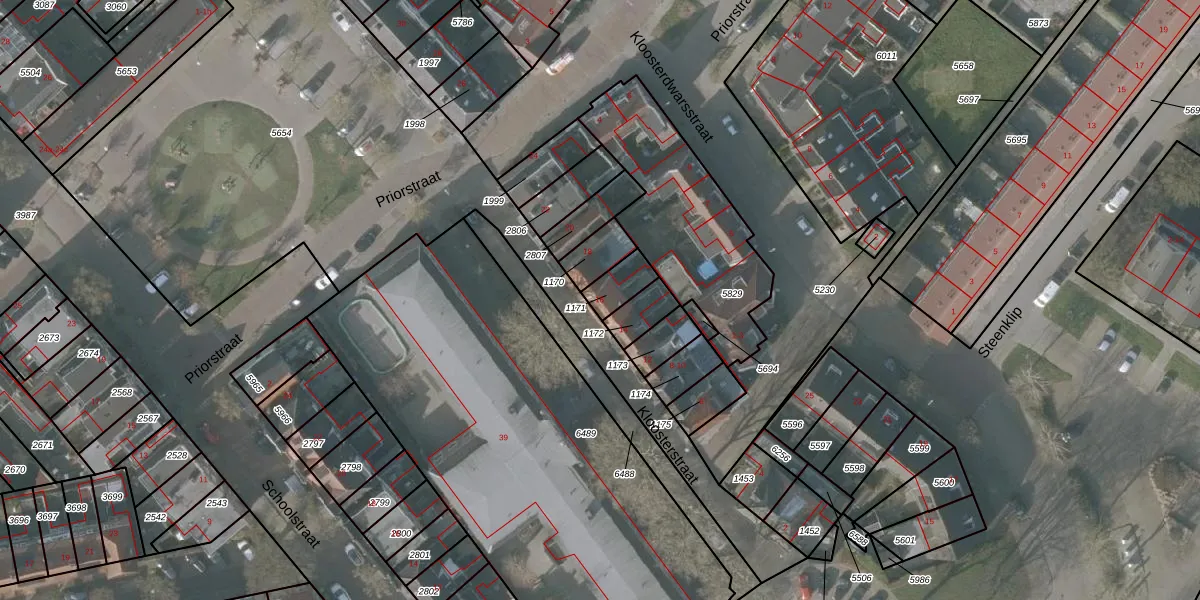 Kloosterstraat 16 is gelegen op kadastraal perceel SNE00A1171. Deze kadastrale aanduiding is uniek en wordt gebruikt door het Kadaster om eigendomsrechten en andere zakelijke rechten vast te leggen. Het perceel maakt onderdeel uit van de kadastrale gemeente Sneek.