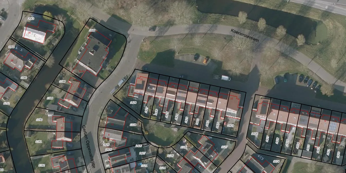 Koeriersterswei 18 is gelegen op kadastraal perceel SNE00E1425. Deze kadastrale aanduiding is uniek en wordt gebruikt door het Kadaster om eigendomsrechten en andere zakelijke rechten vast te leggen. Het perceel maakt onderdeel uit van de kadastrale gemeente Sneek.