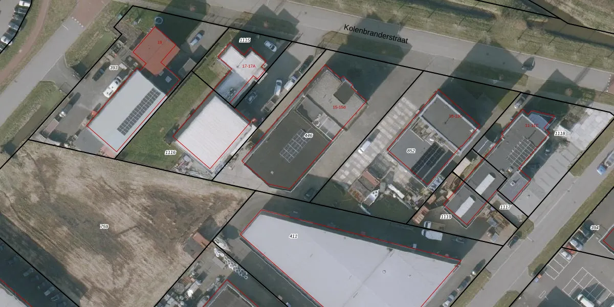 Het perceel waarop Kolenbranderstraat 15-c staat heeft een oppervlakte van 1626 m². Dit is een zeer groot perceel. De perceeloppervlakte wordt geregistreerd door het Kadaster. Gedetailleerde informatie over de maten van dit perceel kunt u vinden in het rapport Kadastrale kaart met maatvoering van Kolenbranderstraat 15-c.