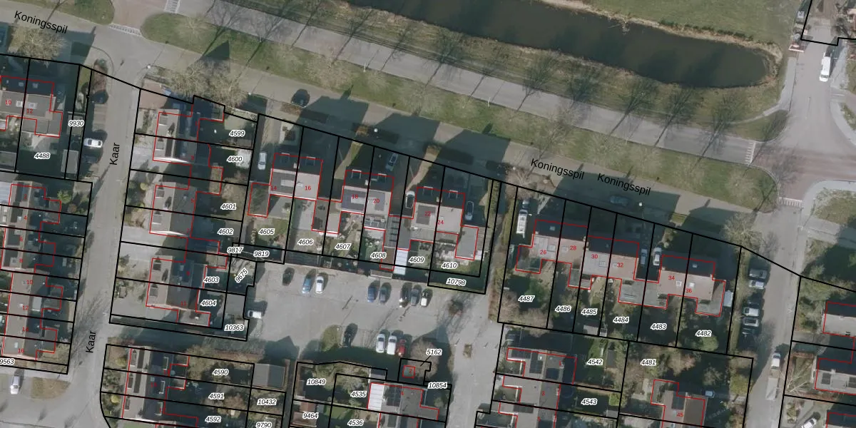 Het perceel waarop Koningsspil 22 staat heeft een oppervlakte van 214 m². Dit is een middelgroot perceel. De perceeloppervlakte wordt geregistreerd door het Kadaster. Gedetailleerde informatie over de maten van dit perceel kunt u vinden in het rapport Kadastrale kaart met maatvoering van Koningsspil 22.