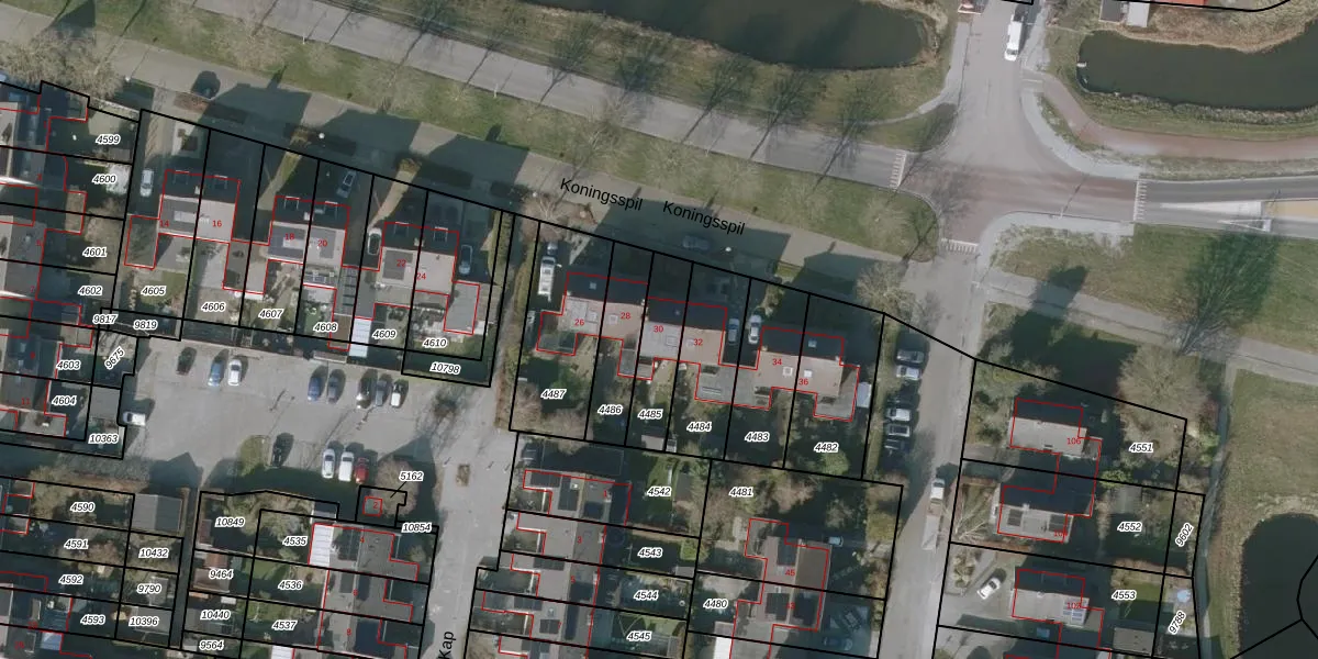 Koningsspil 30 is gelegen op kadastraal perceel SNE00C4485. Deze kadastrale aanduiding is uniek en wordt gebruikt door het Kadaster om eigendomsrechten en andere zakelijke rechten vast te leggen. Het perceel maakt onderdeel uit van de kadastrale gemeente Sneek.