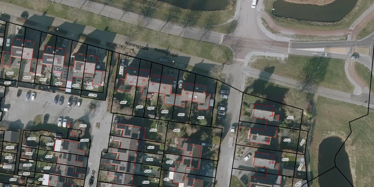 Koningsspil 34 is gelegen op kadastraal perceel SNE00C4483. Deze kadastrale aanduiding is uniek en wordt gebruikt door het Kadaster om eigendomsrechten en andere zakelijke rechten vast te leggen. Het perceel maakt onderdeel uit van de kadastrale gemeente Sneek.