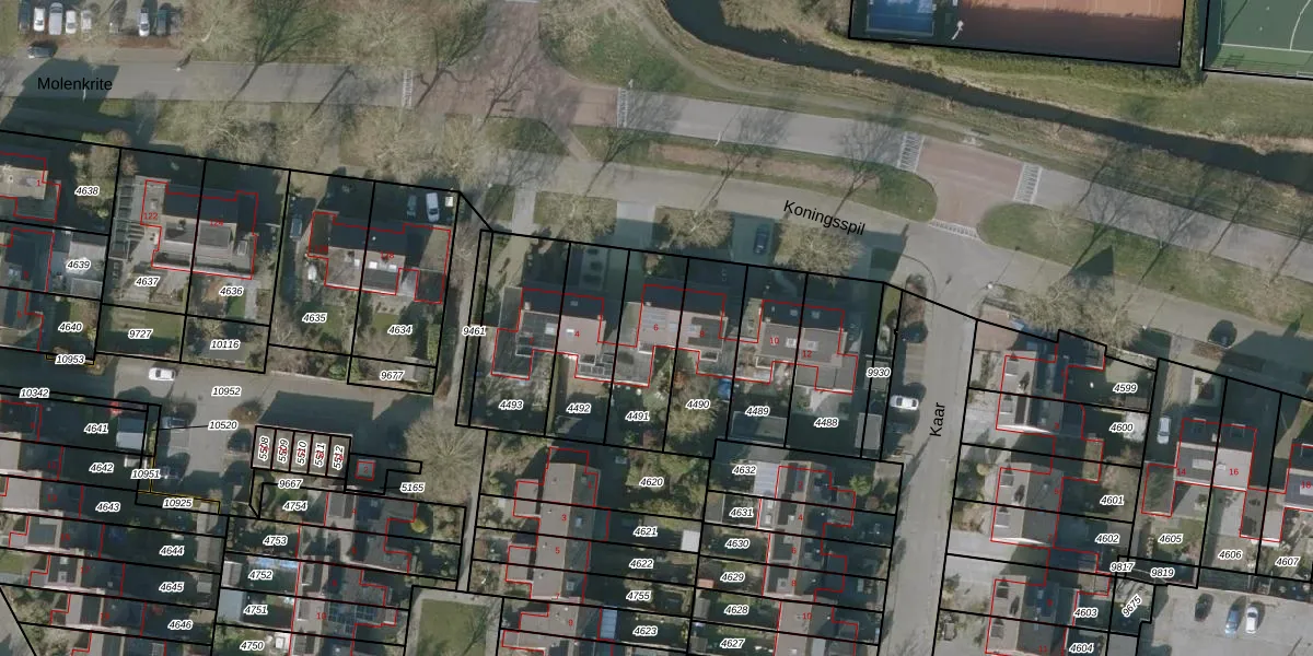 Koningsspil 6 is gelegen op kadastraal perceel SNE00C4491. Deze kadastrale aanduiding is uniek en wordt gebruikt door het Kadaster om eigendomsrechten en andere zakelijke rechten vast te leggen. Het perceel maakt onderdeel uit van de kadastrale gemeente Sneek.