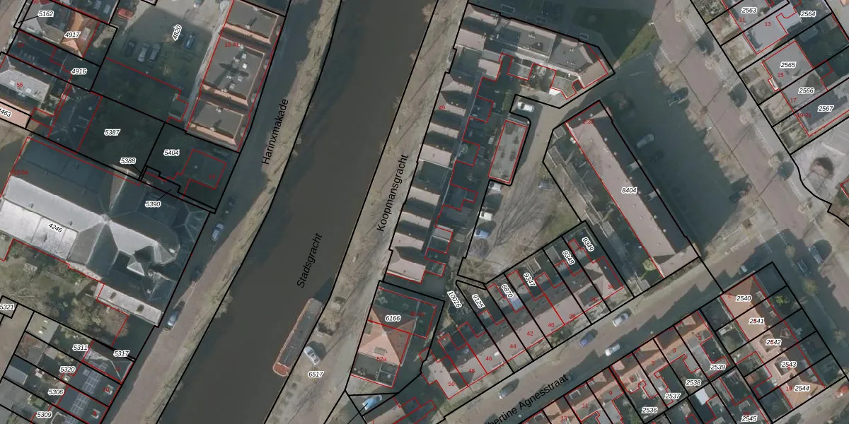 Het adres ligt op het perceel SNE00-C-10026, dat zich in de kadastrale gemeente Sneek bevindt. Het perceel is 2094 m² groot. Dat is kleiner dan de gemiddelde perceeloppervlakte in Sneek, dat op 2095,43 m² ligt. De grootste perceeloppervlakte in de kadastrale gemeente is 61,3 ha. De kleinste oppervlakte bedraagt 0 m². Op het perceel zijn 33 adressen aanwezig. De huidige grenzen van het perceel zijn digitaal in de Basisregistratie Kadaster (BRK) geregistreerd op 12-11-2015.