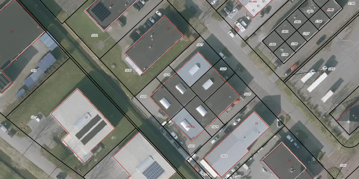 Het adres is gelegen op perceel 1628 in de sectie E en de kadastrale gemeente Sneek. De kadastrale aanduiding is aldus SNE00-E-1628. De gemiddelde perceelgrootte in Sneek is 2095,43 m². Dit perceel is kleiner: de perceeloppervlakte bedraagt 226 m². Het grootste perceel in de kadastrale gemeente is 61,3 ha. Het kleinste perceel heeft een oppervlakte van 0 m². Er zijn geen andere adressen aanwezig op het perceel. De huidige grenzen van het perceel zijn digitaal in de Basisregistratie Kadaster (BRK) geregistreerd op 30-12-1999.