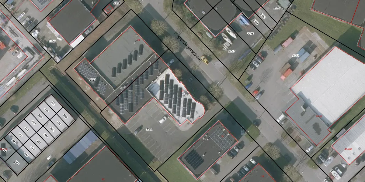 Het perceel waarop Koperslagersstraat 37 staat heeft een oppervlakte van 2277 m². Dit is een zeer groot perceel. De perceeloppervlakte wordt geregistreerd door het Kadaster. Gedetailleerde informatie over de maten van dit perceel kunt u vinden in het rapport Kadastrale kaart met maatvoering van Koperslagersstraat 37.
