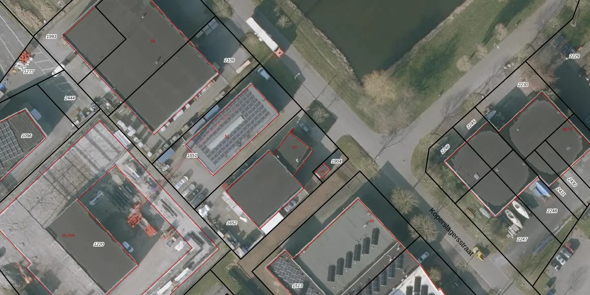 Het perceel waarop Koperslagersstraat 47 staat heeft een oppervlakte van 1097 m². Dit is een zeer groot perceel. De perceeloppervlakte wordt geregistreerd door het Kadaster. Gedetailleerde informatie over de maten van dit perceel kunt u vinden in het rapport Kadastrale kaart met maatvoering van Koperslagersstraat 47.