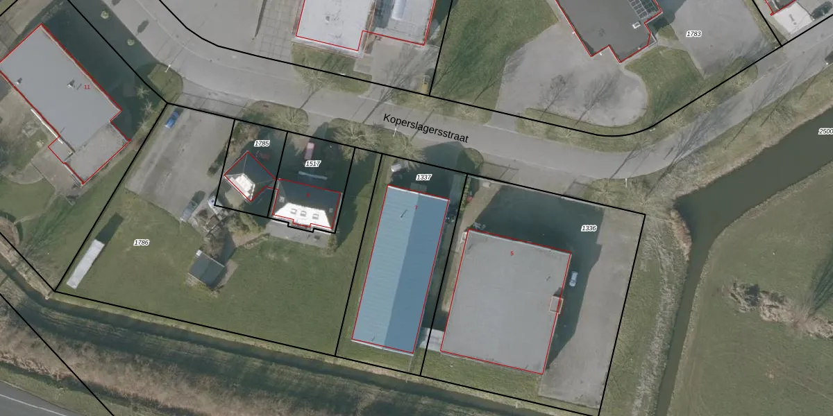 Het perceel waarop Koperslagersstraat 7 staat heeft een oppervlakte van 1050 m². Dit is een zeer groot perceel. De perceeloppervlakte wordt geregistreerd door het Kadaster. Gedetailleerde informatie over de maten van dit perceel kunt u vinden in het rapport Kadastrale kaart met maatvoering van Koperslagersstraat 7.