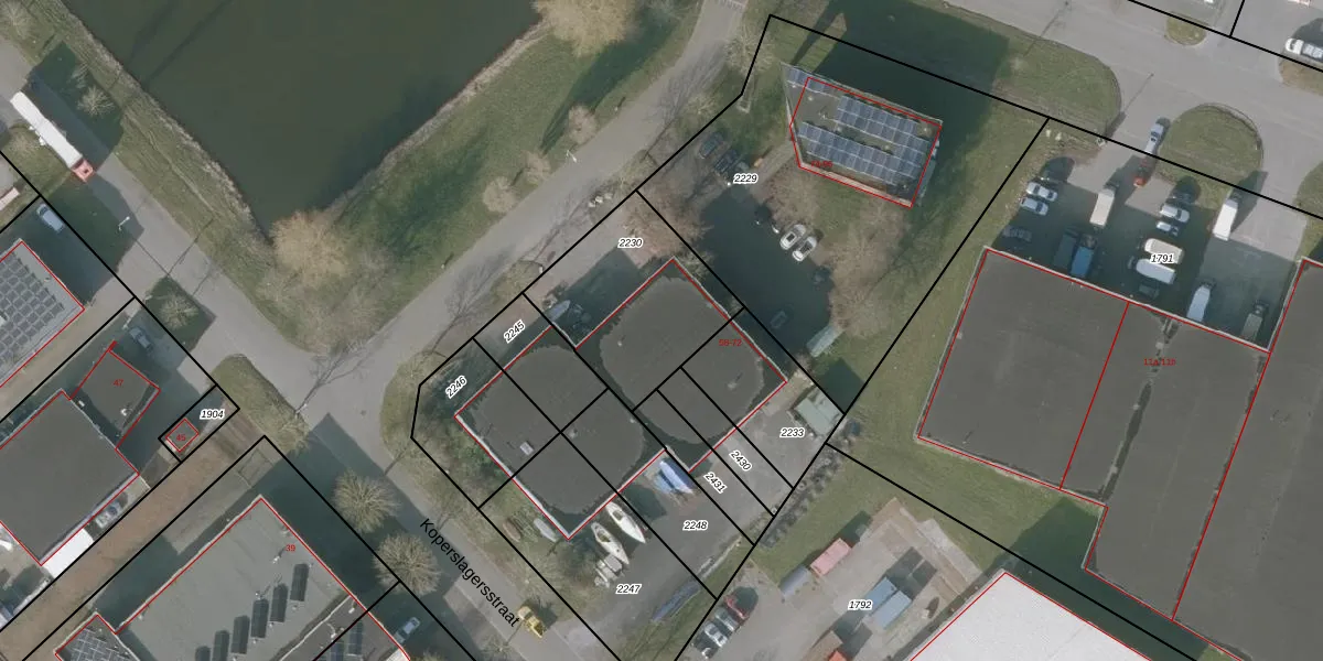 Het perceel waarop Koperslagersstraat 72 staat heeft een oppervlakte van 566 m². Dit is een groot perceel. De perceeloppervlakte wordt geregistreerd door het Kadaster. Gedetailleerde informatie over de maten van dit perceel kunt u vinden in het rapport Kadastrale kaart met maatvoering van Koperslagersstraat 72.