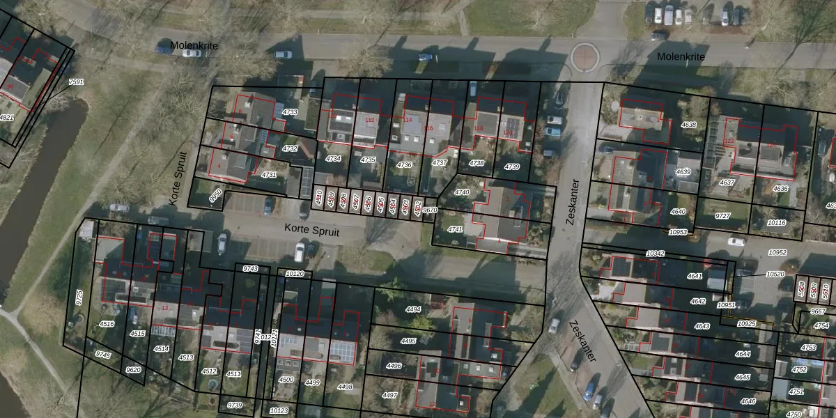 Gebruik de zoekbalk of klik op een perceel voor informatie over de adressen binnen dit perceel.