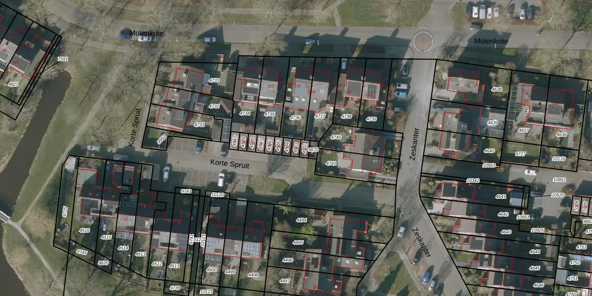 Korte Spruit 2-b is gelegen op kadastraal perceel SNE00C4503. Deze kadastrale aanduiding is uniek en wordt gebruikt door het Kadaster om eigendomsrechten en andere zakelijke rechten vast te leggen. Het perceel maakt onderdeel uit van de kadastrale gemeente Sneek.