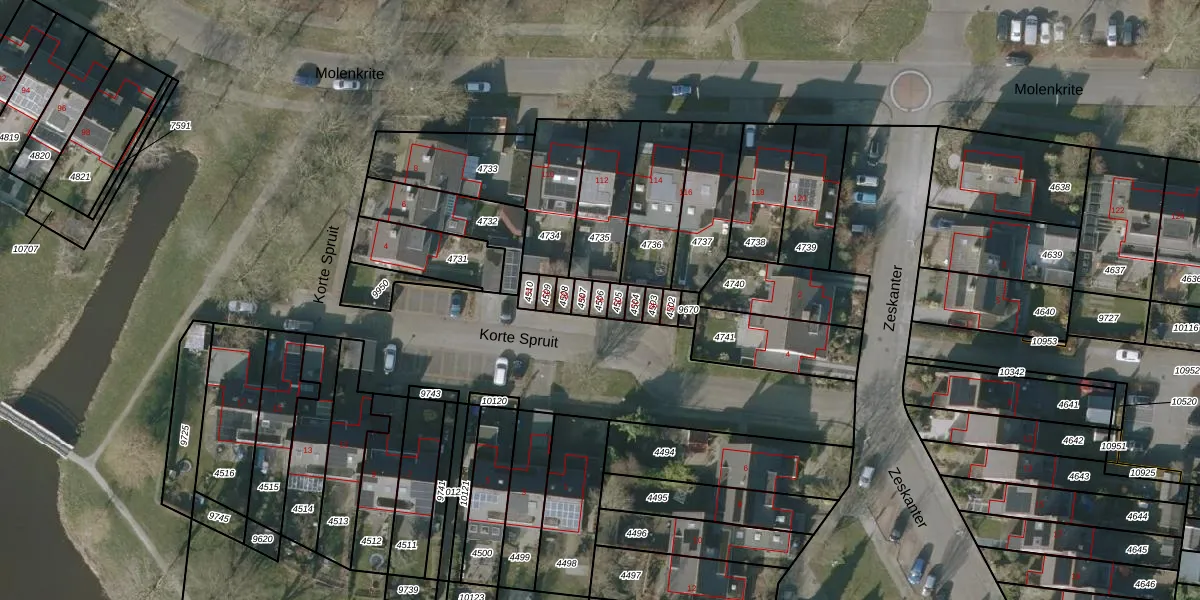 Gebruik de zoekbalk of klik op een perceel voor informatie over de adressen binnen dit perceel.