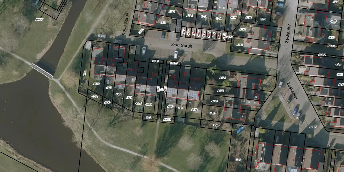 Korte Spruit 5 is gelegen op kadastraal perceel SNE00C4500. Deze kadastrale aanduiding is uniek en wordt gebruikt door het Kadaster om eigendomsrechten en andere zakelijke rechten vast te leggen. Het perceel maakt onderdeel uit van de kadastrale gemeente Sneek.